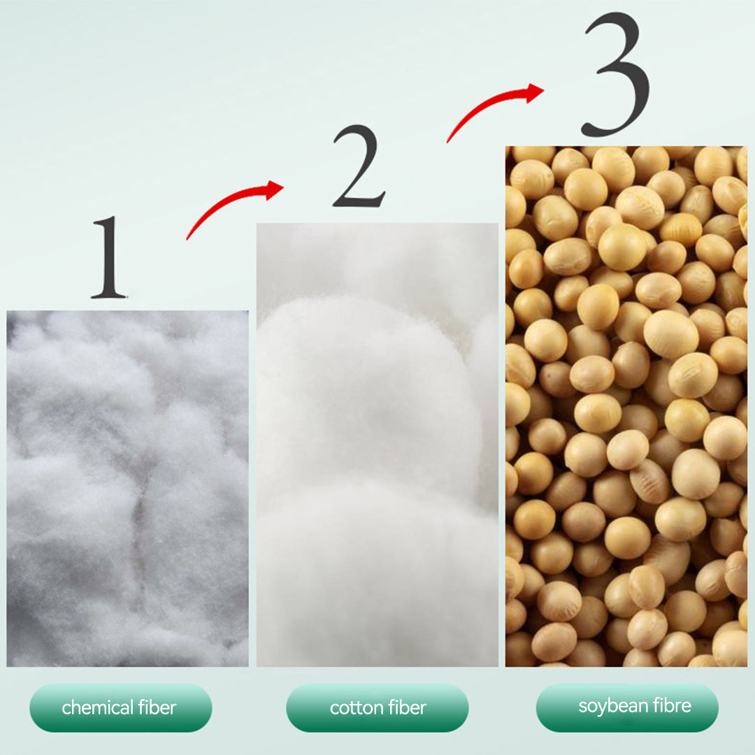 The elasticity of soybean fiber itself is low, and the more content, the easier the core is to harden in the process of use. After REPEATED STUDIES, ONLY WHEN THE CONTENT OF SOYBEAN fiber IS 20% AND THE content of POLYESTER fiber IS 80% GOLD RATIO, CAN THE use effect OF SOYBEAN quilt be achieved.