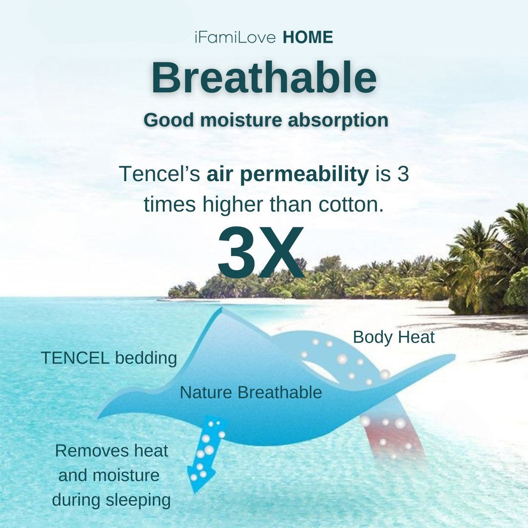 Derived from eucalyptus wood pulp, its fibers are smoother and more uniform than cotton, allowing air to flow more freely through the fabric.
